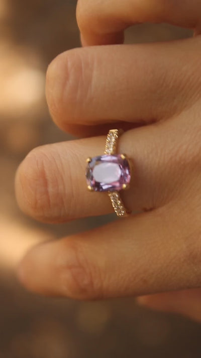 Anillo inspirado en la Flor de Loto, con dos capas de pétalos y engaste en grifa de una piedra central de 5 milímetros.